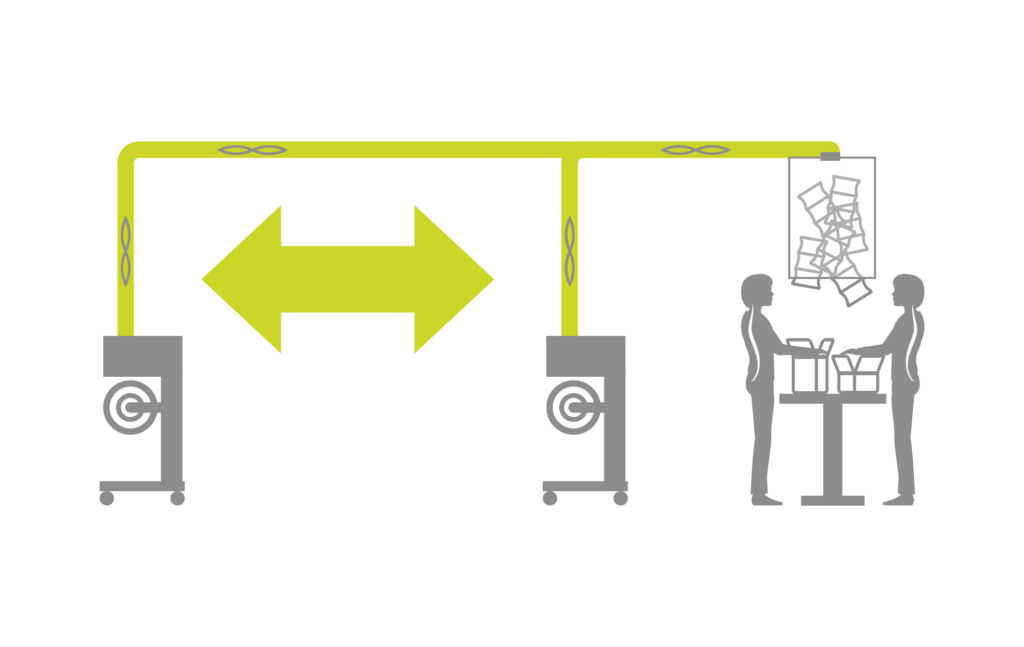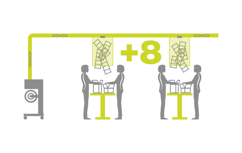 Mit einer Luftpolstermaschine können bis zu 8 Doppelpackplätze versorgt werden (je nach Layout)