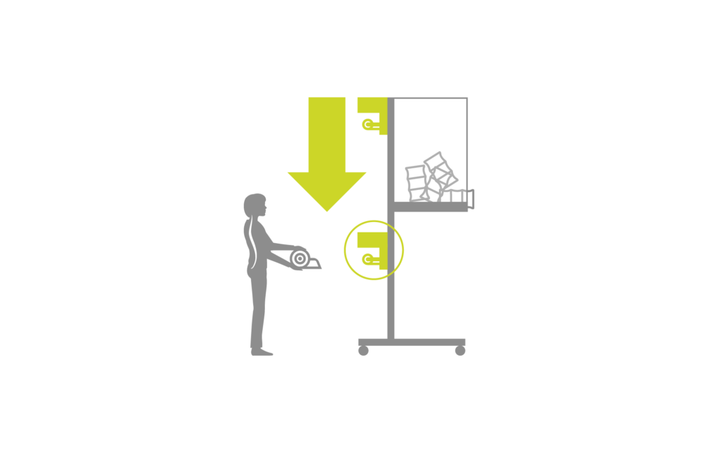 Absenkbare Ausführung, damit der Rollenwechsel komfortabler und schneller erfolgt