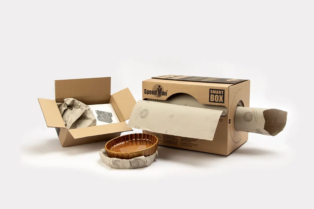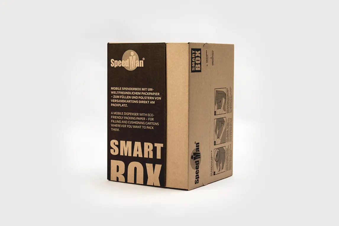 Die SpeedMan® Smart Box ist eine praktische Papierspendebox für individuelles und umweltfreundliches Verpacken. Sie ist ideal, wenn Sie Versandpakete füllen, Produkte einwickeln oder Papier als Zwischenlage einsetzen möchten – ohne zusätzliches Gerät am Packplatz.