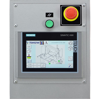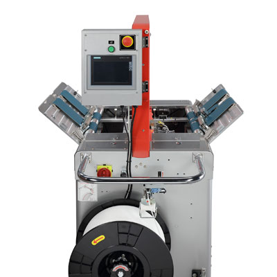 JU 100 TBH: Vollautomatische Umreifung für Förderstraßen – Komfortmodell mit Bedienoberfläche und erweiterten Funktionen